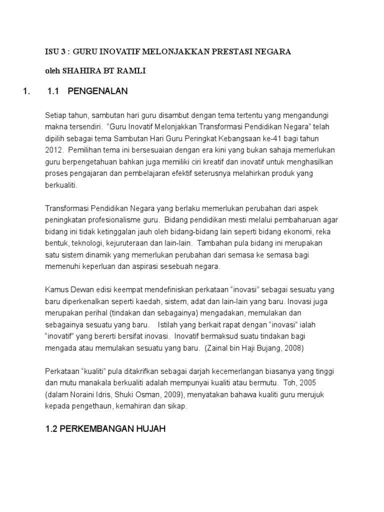 1 1 1 Pengenalan Isu 3 Guru Inovatif Melonjakkan Prestasi Negara Oleh Shahira Bt Ramli