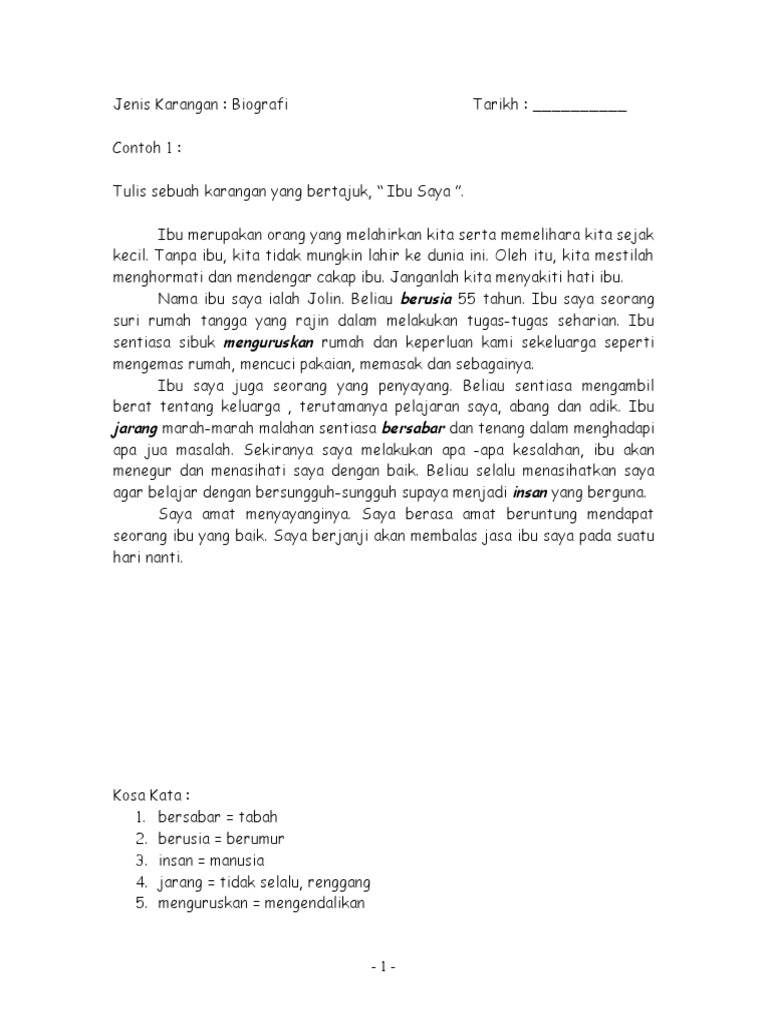 Contoh Soalan Karangan Autobiografi Tahun 4 Soalan Bi