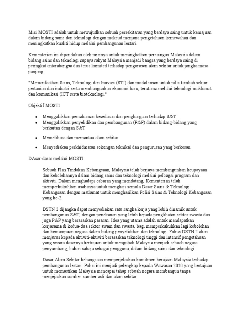 Misi Mosti Adalah Untuk Mewujudkan Sebuah Persekitaran Yang Berdaya Saing Untuk Kemajuan Dalam Bidang Sains Dan Teknologi Dengan Maksud Menjana Pengetahuan Kemewahan Dan Meningkatkan Kualiti Hidup Melalui Pembangunan Lestar