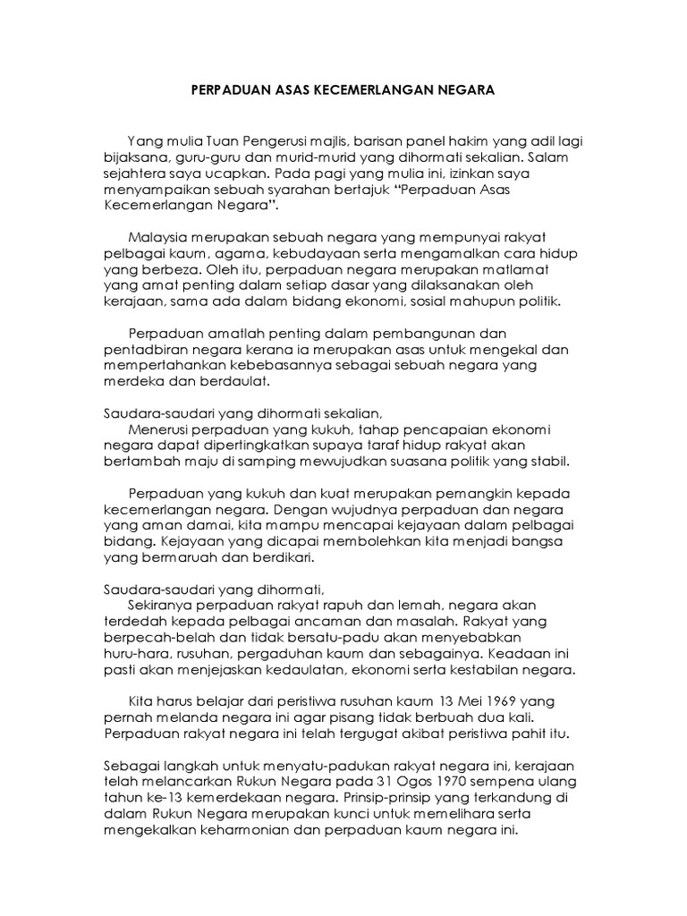 karangan kepentingan perpaduan kaum di malaysia tingkatan 1