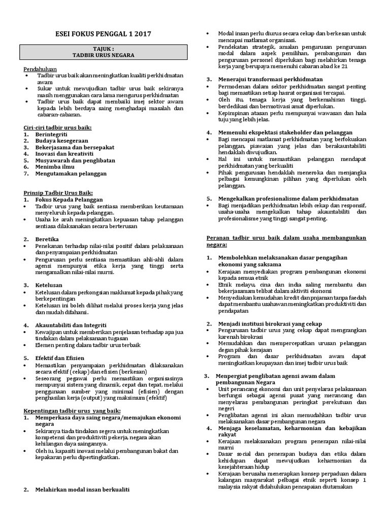 Soalan Esei Pengajian Am Penggal 1 Tabdir Urus Yang Baik