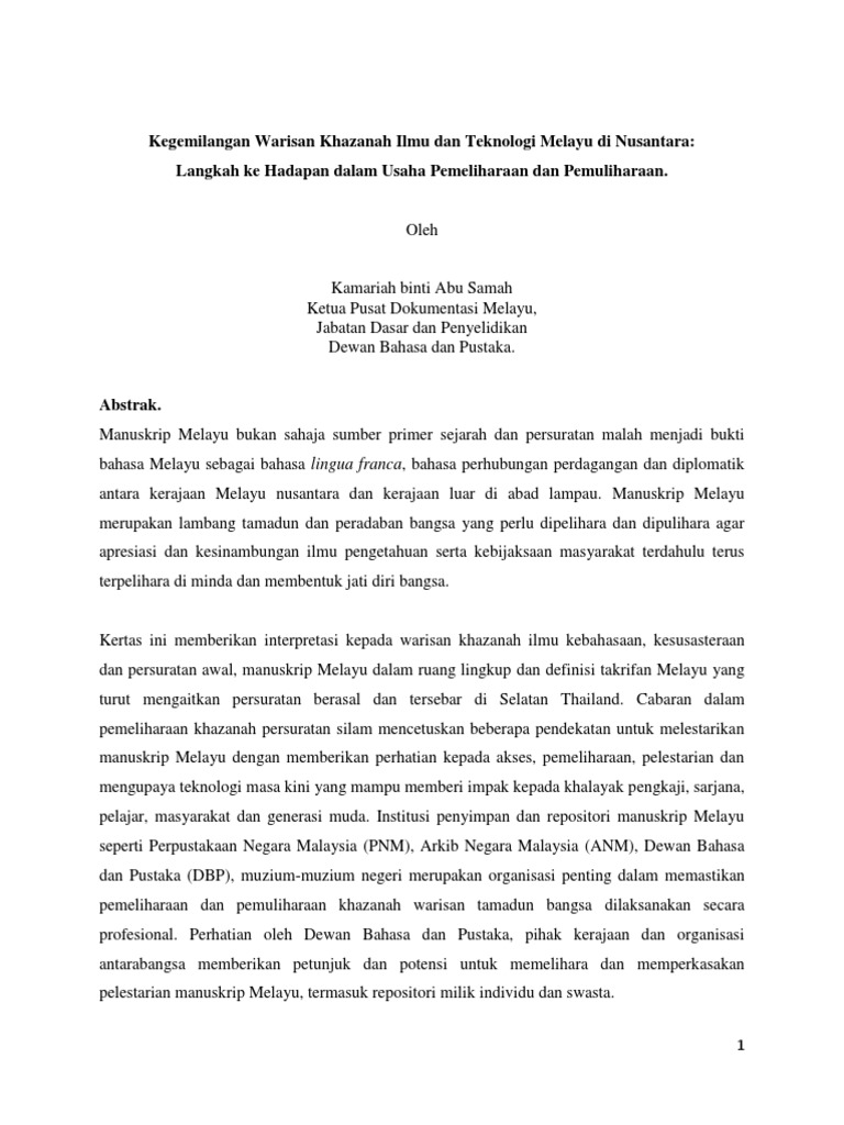 Kegemilangan Warisan Khazanah Ilmu Dan Teknologi Melayu Di Nusantara