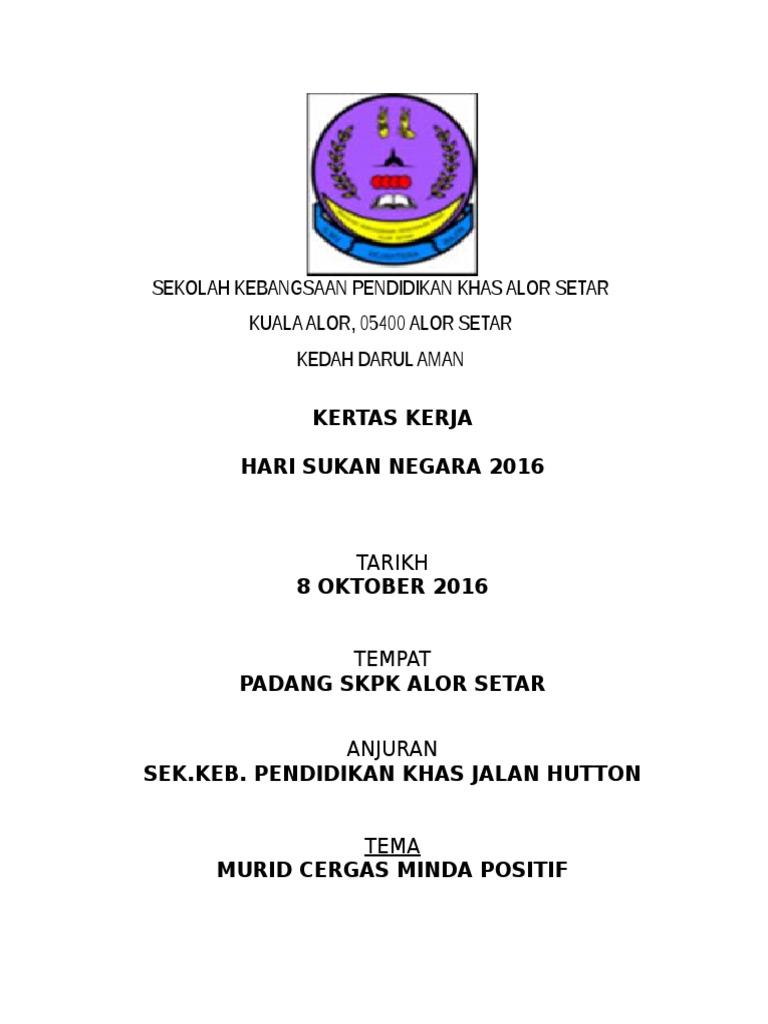 Kertas Kerja Hari Sukan Negara Peringkat Sekolah