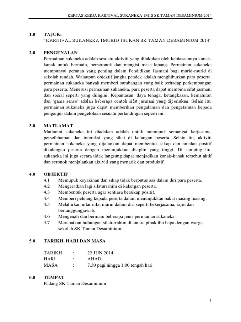 Kertas Kerja Karnival Sukan Kanak Kanak Updated 15 Sep Pages 1 19 Text Version Anyflip