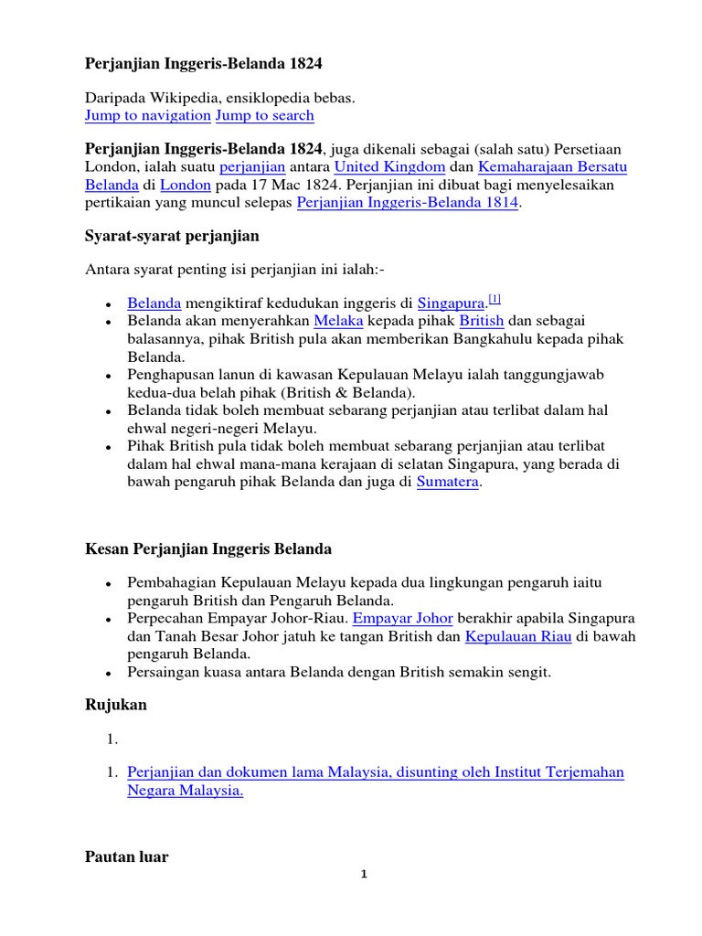 Perjanjian Inggeris Belanda 1824 Wikipedia Bahasa Melayu Ensiklopedia Bebas