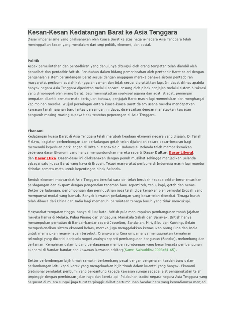 Bahan Kesan Kedatangan Barat Ke Asia Tenggara Sej T5 Bab 2