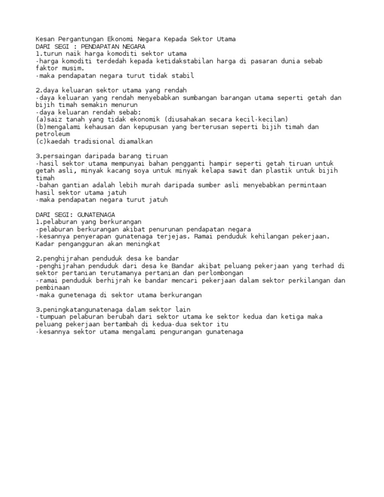Kesan Pergantungan Ekonomi Negara Kepada Sektor Utama