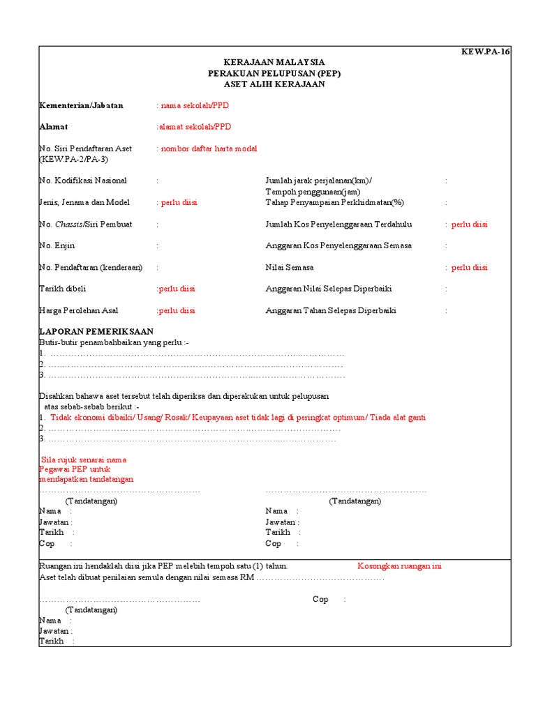 Contoh Kew Pa 16 Perakuan Pelupusan Pep