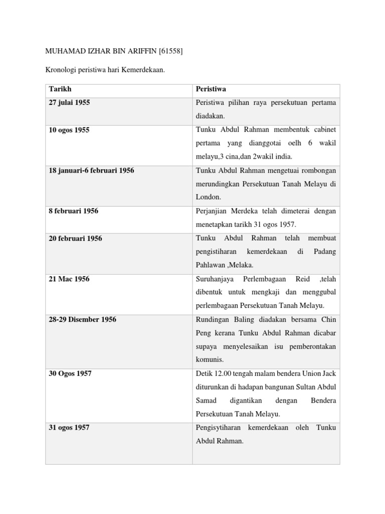 Kronologi Peristiwa Kemerdekaan Tanah Melayu