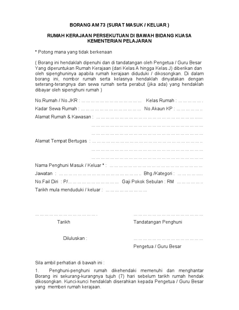 Borang Am 73 Kuarters Pendidkan