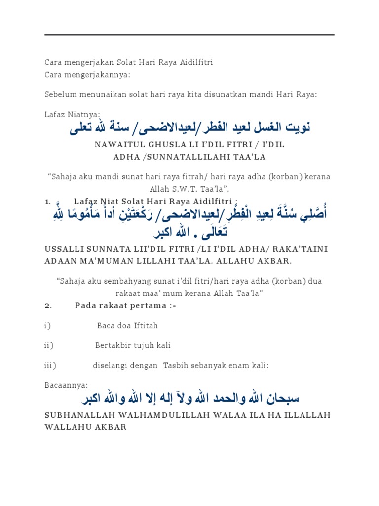 Lafaz Takbir Raya Aidilfitri Solat Islam Cara