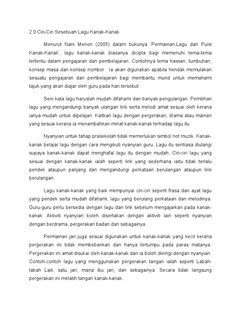Bk Early Childhood Education Specialist Bk Pakar Pendidikan Awal Kanak Kanak Lirik Dan Lagu Kanak Kanak