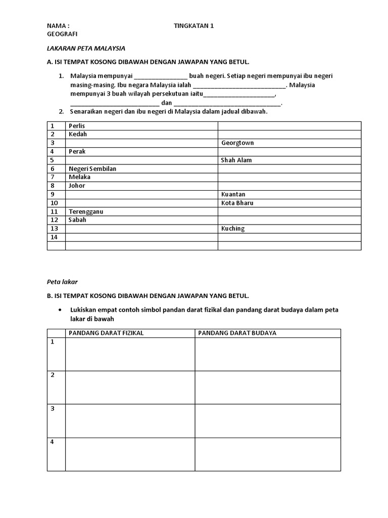 Latihan Bab 4 Lakaran Peta Malaysia Dan Bab Bumi Geografi Tingkatan 1 2019