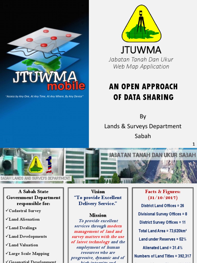 Disseminating up to date land information to users in a timely manner. Each land parcel have a unique common identifier known as title number with parcel based information including survey plan no survey date surveyor field book number and etc. Sabah lands and surveys department wisma tanah dan ukur jalan perwira 88100 kota kinabalu sabah malaysia. A web portal hosting integrated land based data including land title records revenue valuation cadastral surveys land development and land use.
