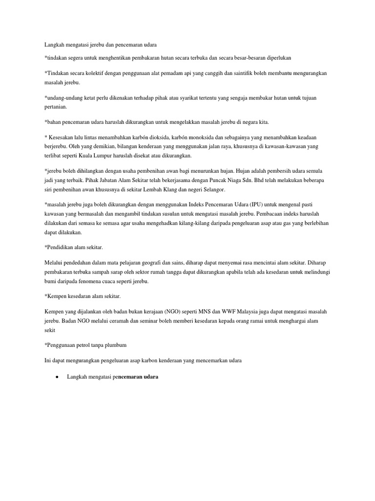 Karangan Contoh 17 Langkah Langkah Mengatasi Jerebu