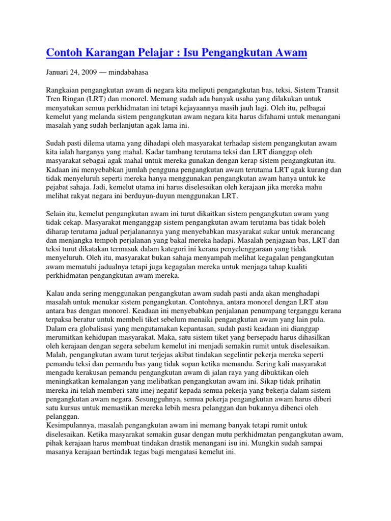 Contoh Karangan Pelajar Isu Pengangkutan Awam