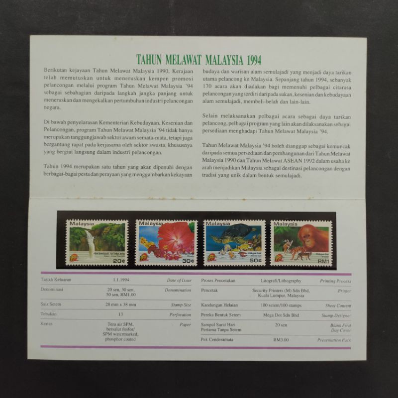 1994 1st Jan Presentation Pack Malaysia Visit Malaysia Year Shopee Malaysia