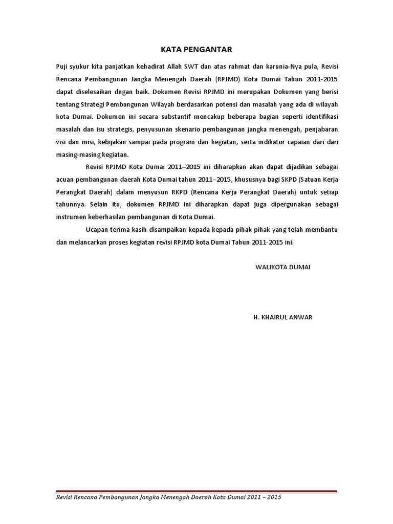 Dokumen Rpjmd 2011 2015 Kota Dumai