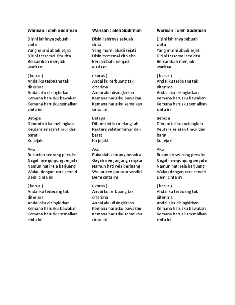 Lirik Lagu Di Sini Lahirnya Sebuah Cinta Sudirman
