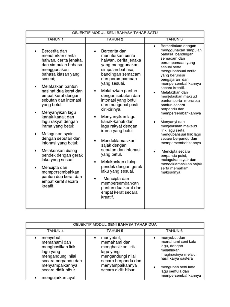 Objektif Modul Seni Bahasa Dan Tatabahasa Tahap Satu Dua