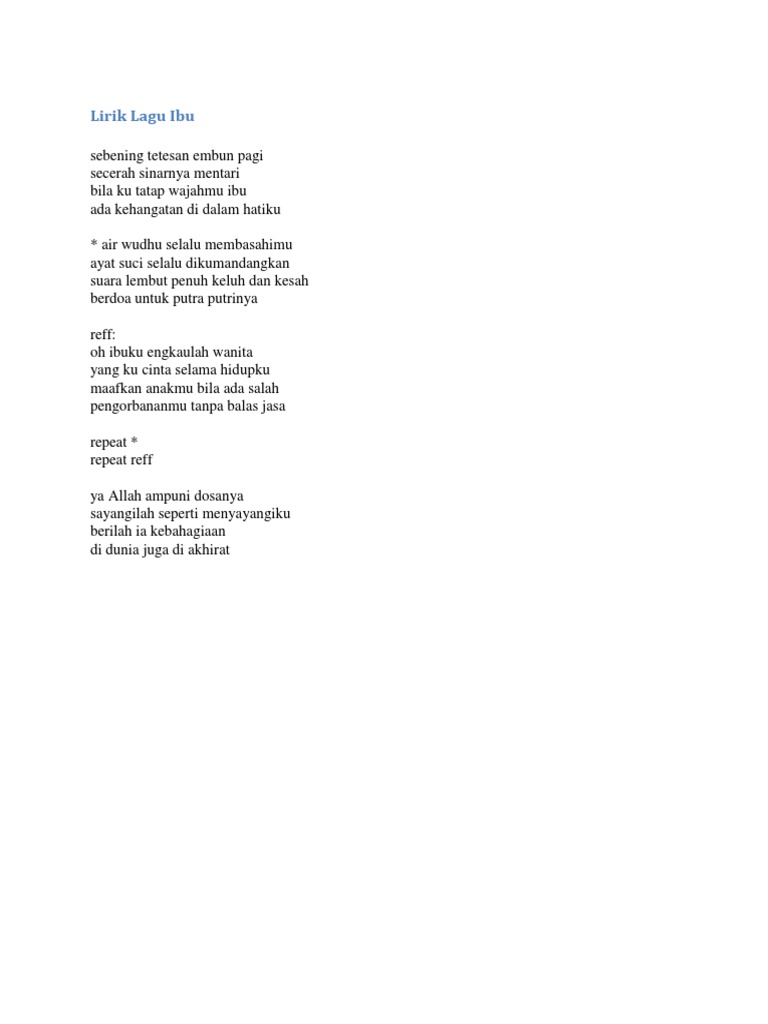 Doc Lirik Ibu Zizah Cho Academia Edu