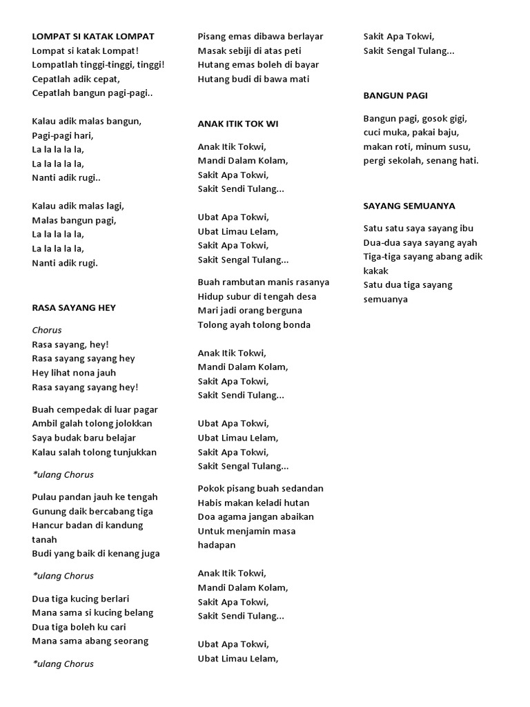 Lirik Lagu Rasa Sayang Hey Kanak Kanak