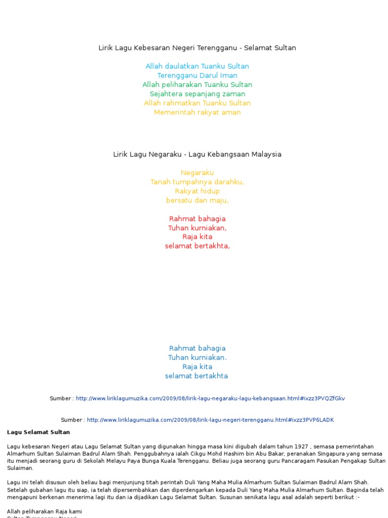 Lirik Lagu Selamat Sultan Terengganu Docx Document