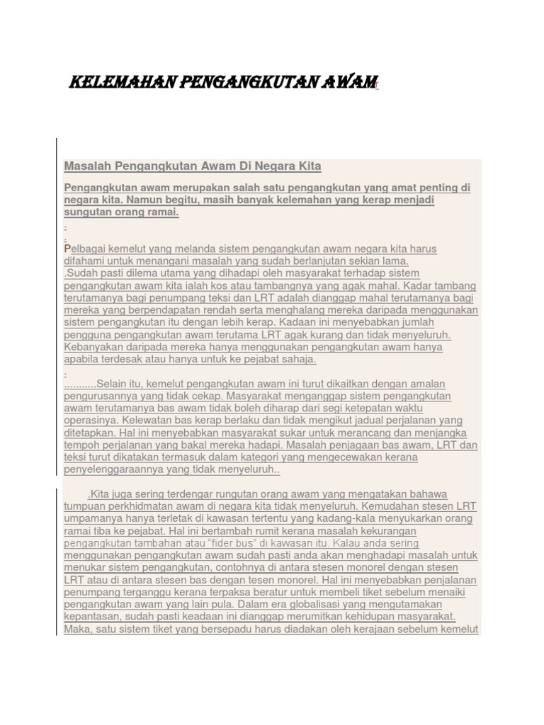 Doc Masalah Sistem Pengangkutan Awam Di Negara Kita Dan Cara Mengatasinya Ellis Suraya Academia Edu