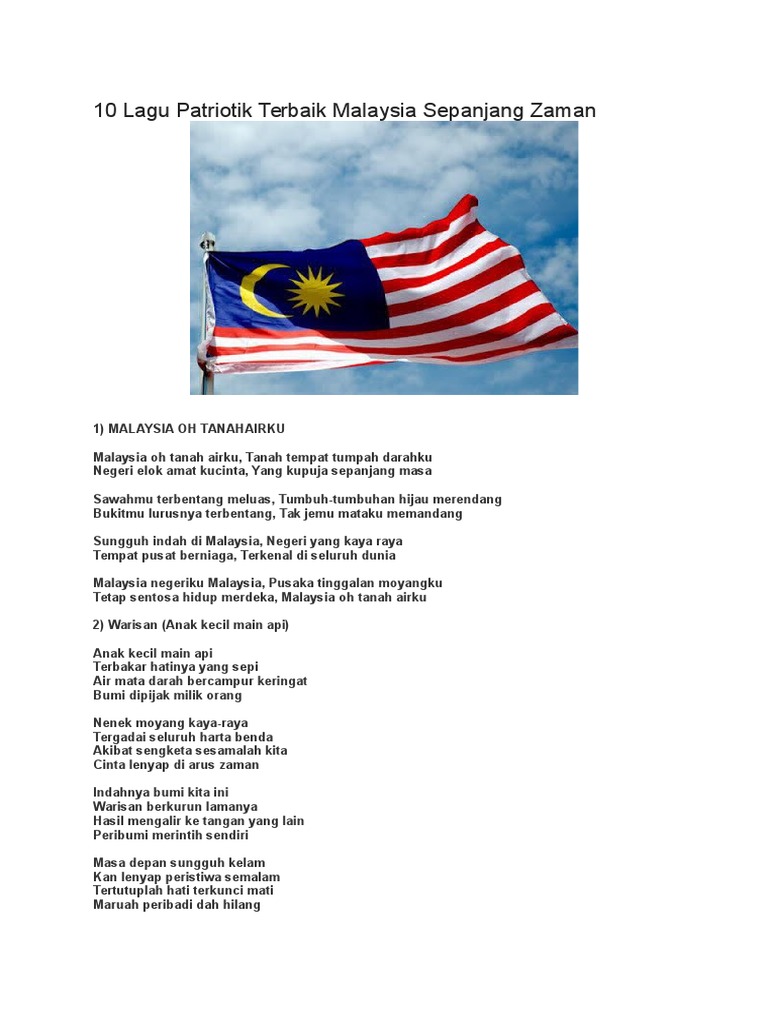 10 Lagu Patriotik Terbaik Malaysia Sepanjang Zaman