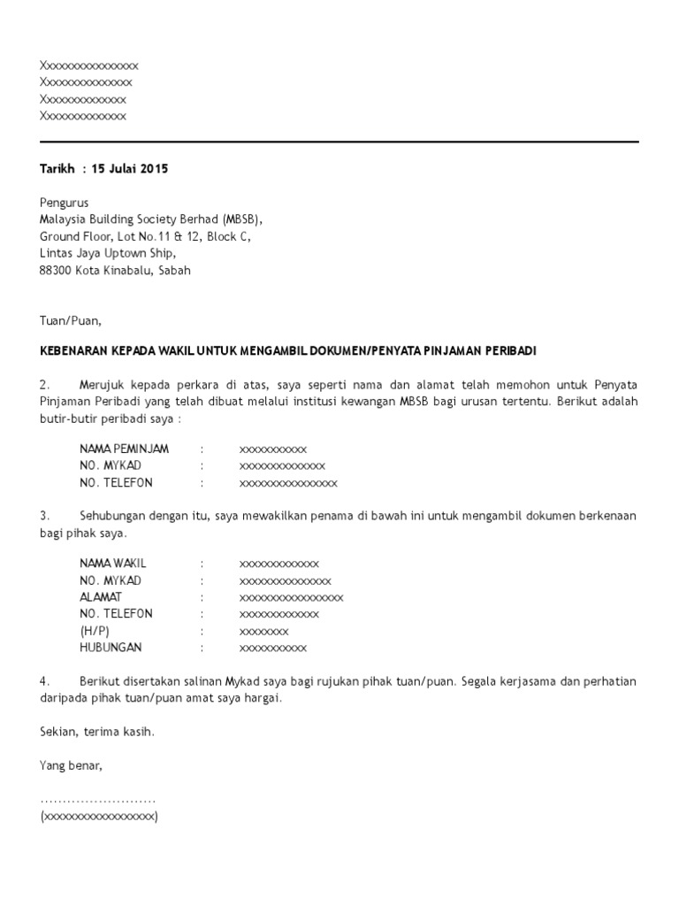 Mewakilkan Contoh Surat Wakil Ambil Dokumen