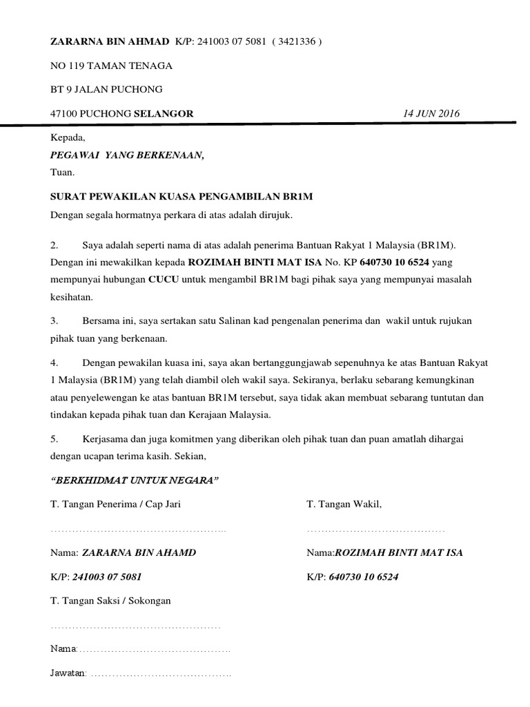 Contoh Surat Wakil Kuasa Ambil Kereta Cute766