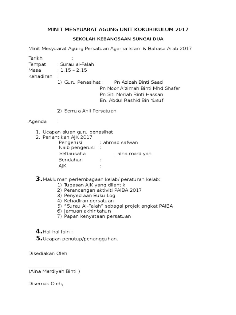 Minit Mesyuarat Persatuan Agama Islam Doc Persatuan Agama Islam Sekolah Kebangsaan Kebangsaan Seri Padang Sari Minit Mesyuarat Kali 1 2020 Tarikh Masa Course Hero