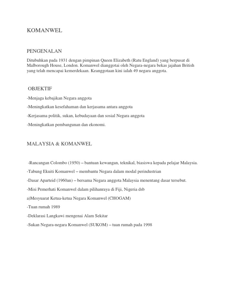 Penglibatan Malaysia Dalam Pertubuhan Komanwel M Update