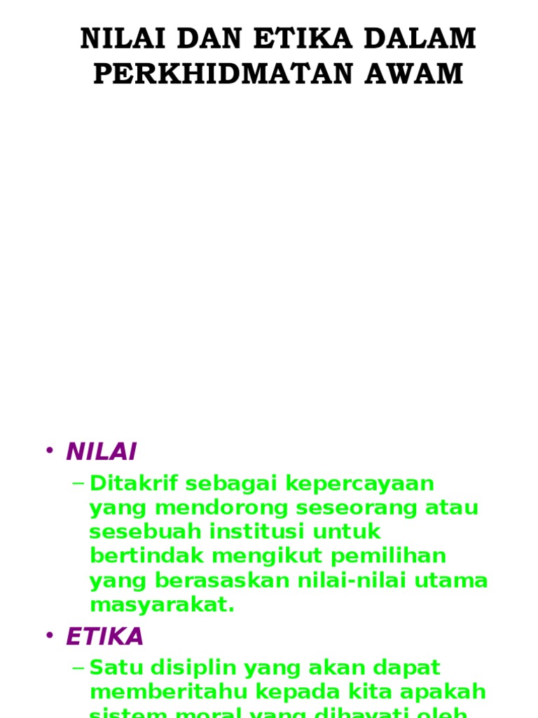 Nilai Dan Etika Perkhidmatan Awam Pendahuluan
