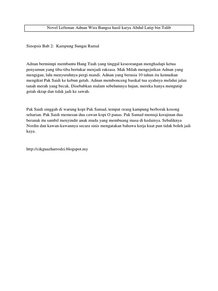 Novel Leftenan Adnan Wira Bangsa Karya Abdul Latip Talib