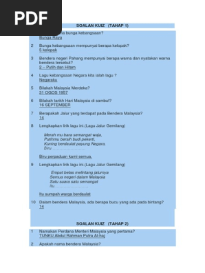 Soalan Kuiz Tahap 1 Dan Tahap 2