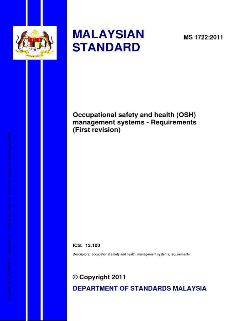 Malaysian Standards Of Occupational Safety And Health Management System Download Table
