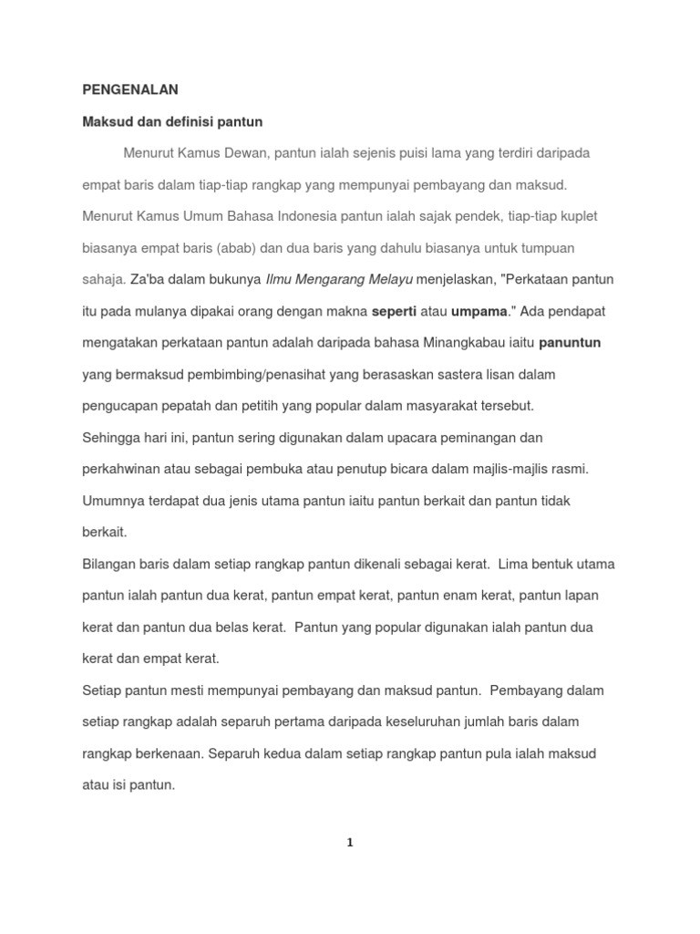 Pengenalan Kertas Kerja Pantun