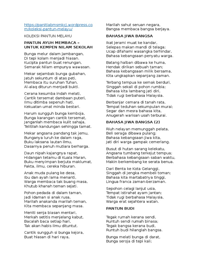 Pantun Pantun Bahasajiwabangsa Dewan Bahasa Dan Pustaka Malaysia Facebook