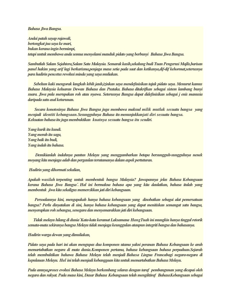 Teks Pidato Bahasa Jiwa Bangsa 2