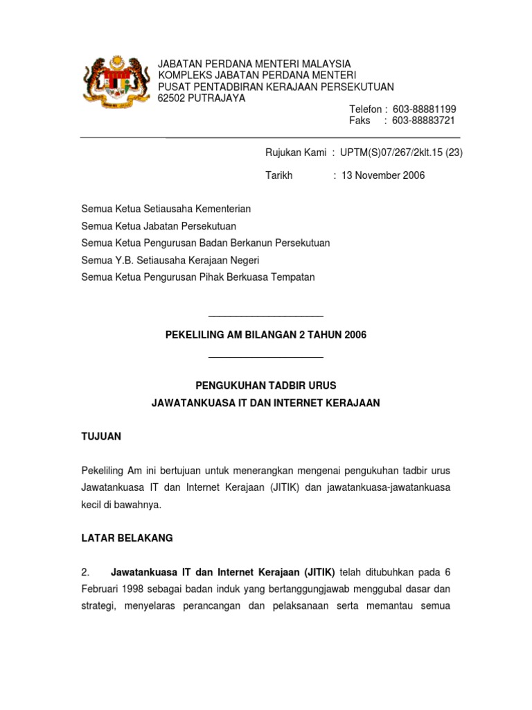 Surat Pekeliling Am Bil 2 2006 Pengukuhan Tadbir Urus Jawatankuasa It Amp Internet Kerajaan